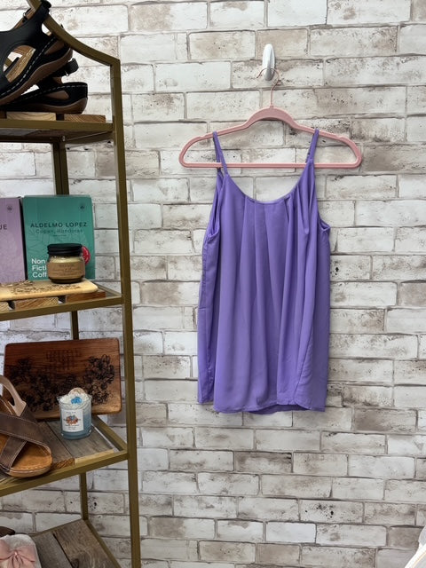 Soft, feminine, and effortlessly chic — the Lavender Dreams Pleated Cami Top is a warm-weather must-have. Featuring delicate pleating along the front, adjustable spaghetti straps, and a flowy silhouette, this cami offers a flattering fit with a touch of elegance. The dreamy lavender hue adds a fresh pop of color that pairs beautifully with both casual and dressy pieces.